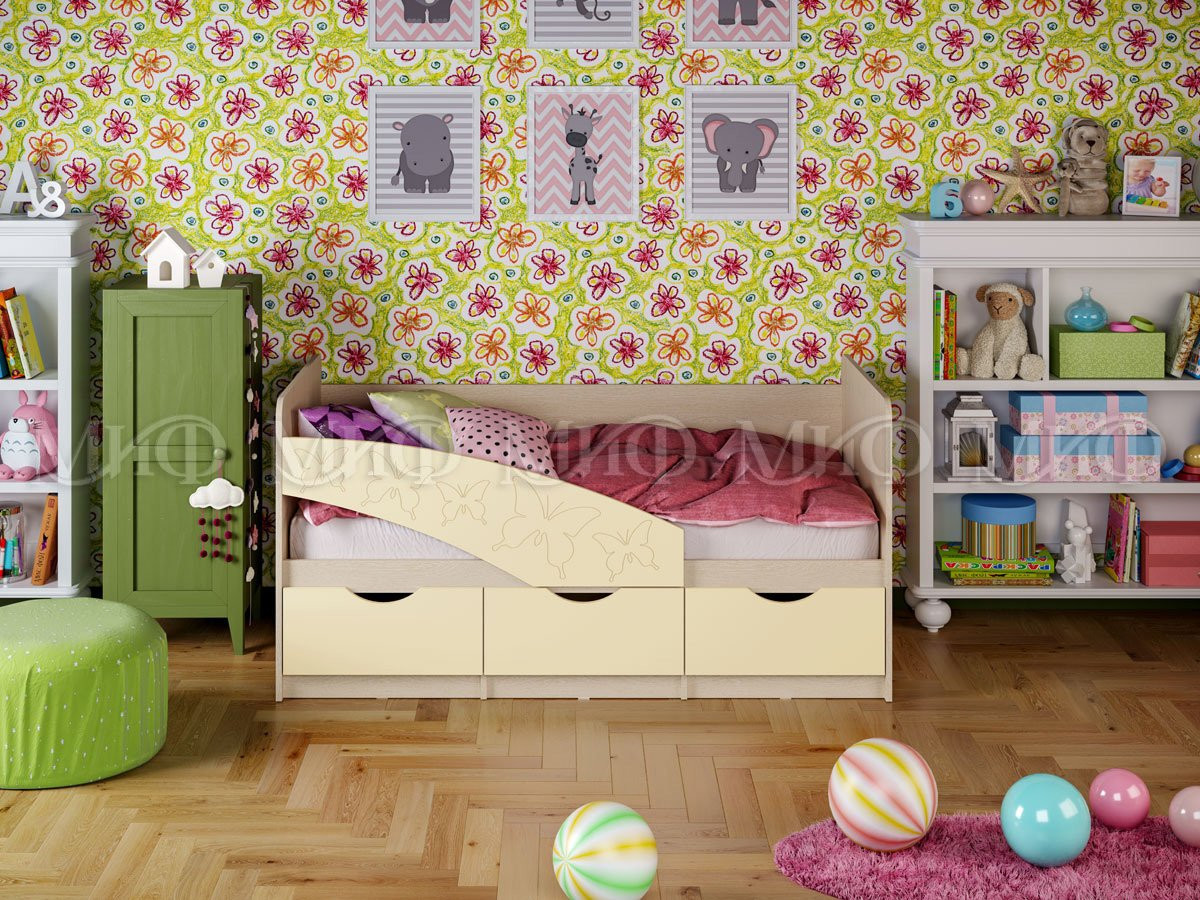 Детская Кровать Бабочки/Разные Цвета