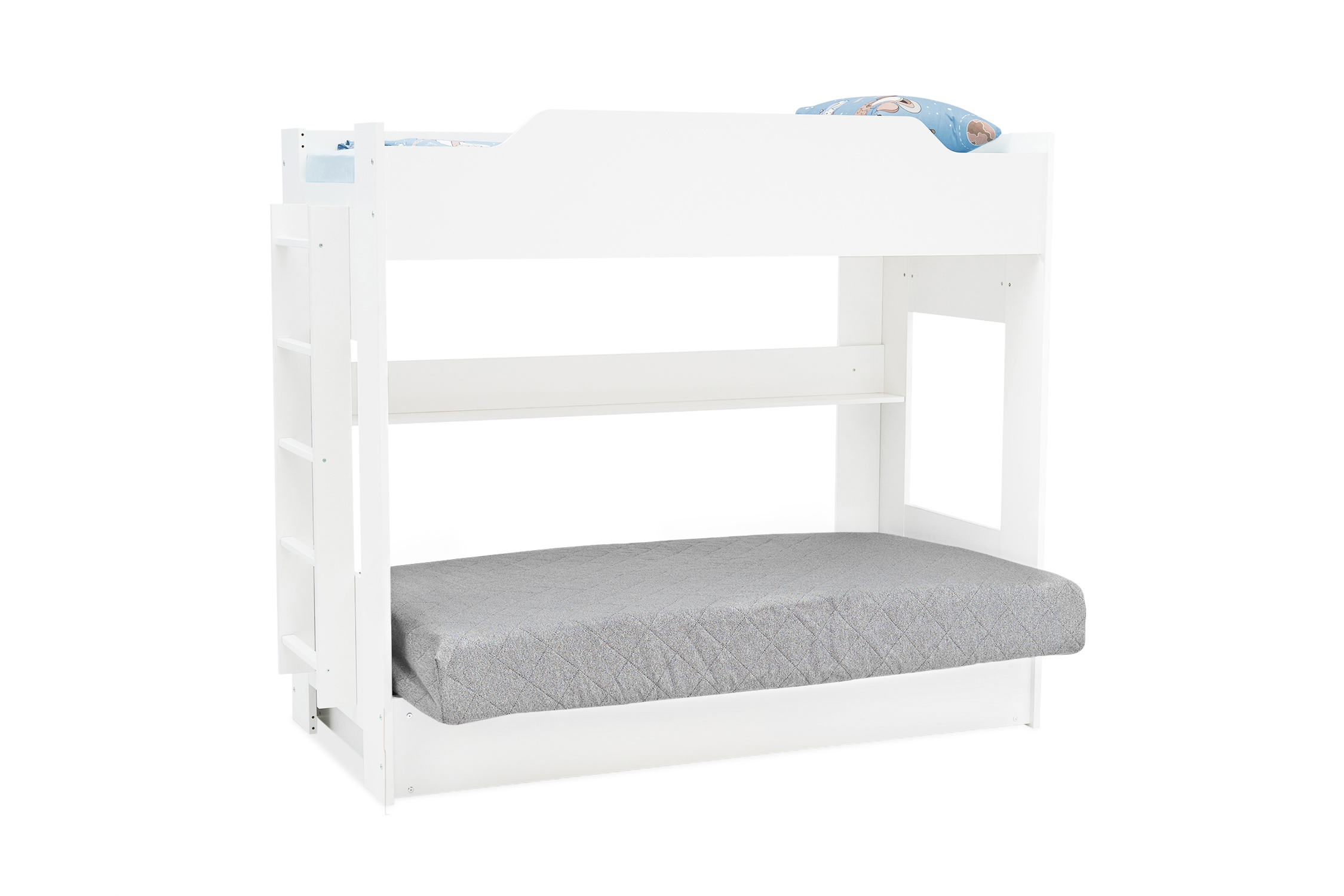 Механизм трансформации дивана: «Книжка». Рекомендуемая высота матраса на верхний ярус 17 см. Максимальная нагрузка на верхний ярус 50 кг. Лестница может быть установлена с обеих сторон кровати. Высота бортика 30 см. Максимальная нагрузка на нижний ярус 90 кг. Чехол съемный.